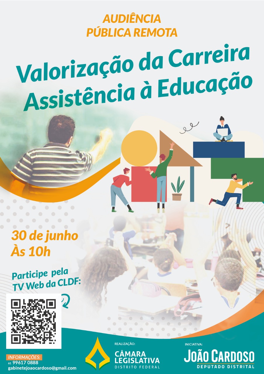 A Câmara Legislativa do Distrito Federal irá promover nesta quarta (30/6), às 10h, uma audiência pública remota para discutir as principais necessidades da carreira de Assistência à Educação. A autoria é do deputado João Cardoso (Avante), que acaba de protocolar na Casa dois projetos de lei destinados à categoria. Reunião será transmitida, ao vivo, pelo canal da CLDF no Youtube.
