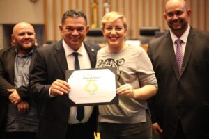 Jornalista Clarice Gulyas recebe Moção de Louvor em solenidade da CLDF