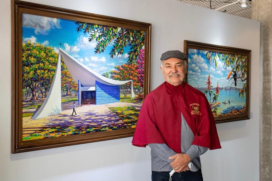 As telas de Otoniel Fernandes – que retratam aspectos da Capital em suas formas arquitetônicas e naturais, com a aplicação de cores vibrantes – prosseguirão expostas na Câmara Legislativa do Distrito Federal durante o mês de junho. A prorrogação da exposição “Brasília, um atelier ao livre” é mais uma oportunidade para conhecer a obra do artista, que chegou ao DF no início dos anos 1970 e especializou-se em pintar edifícios e a paisagem brasiliense a partir de pontos de vista inusuais.