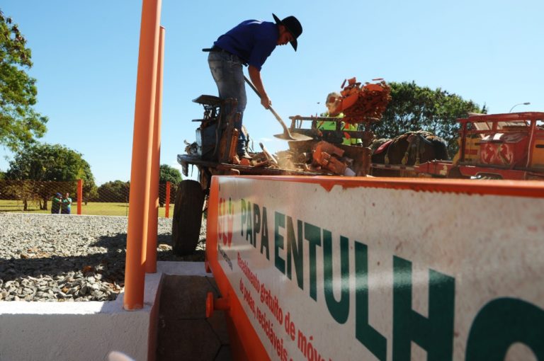 Não é permitido descartar nos papa-entulhos: resíduos domésticos (orgânicos e rejeitos); industriais; de serviços de saúde; eletrônicos; pneus; embalagens de agroquímicos; de produtos fitossanitários e de óleos lubrificantes; lâmpadas, pilhas e baterias; equipamentos ou materiais que tenham metais pesados; gesso; espelhos; vidros; amianto; tintas; solventes e tonner.